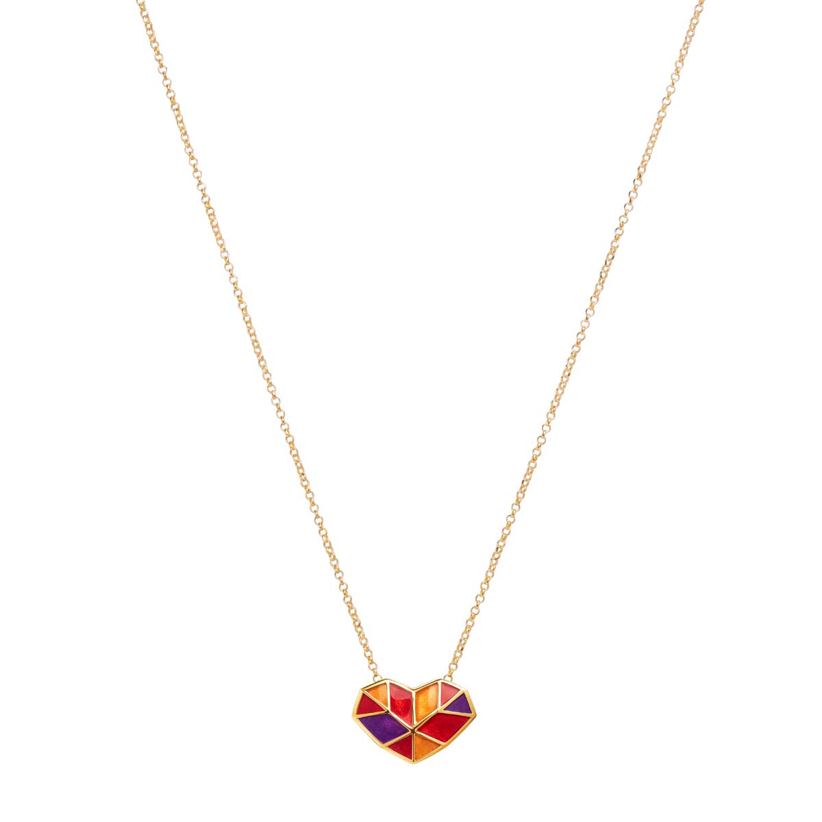 Κολιέ heart από ασήμι 925 καρδιά βιτρώ με διάφορα χρώματα σμάλτο, επίχρυση καδένα ασήμι 925 μήκος 43εκ, κούμπωμα ανεροσόλ