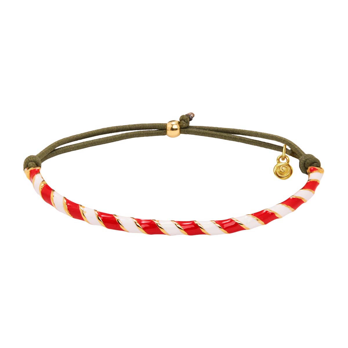 βραχιόλι επίχρυσο από ορείχαλκο Μάρτης με σμάλτο και πράσινο ελαστικό κορδόνι
