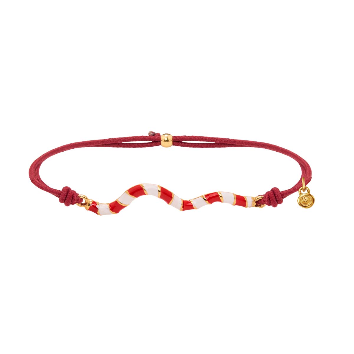 βραχιόλι επίχρυσο από ορείχαλκο Μάρτης με σμάλτο και γκρενά ελαστικό κορδόνι