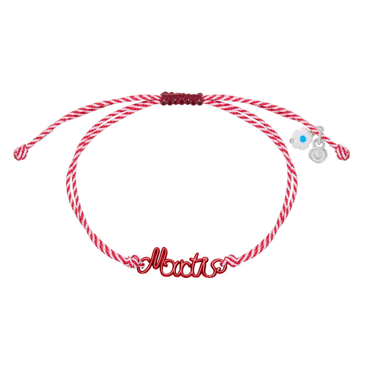 βραχιόλι από ορείχαλκο Martis, μπορντώ νανοκεραμική βαφή, κορδόνι μάρτης, κούμπωμα μακραμέ αυξομειώμενο