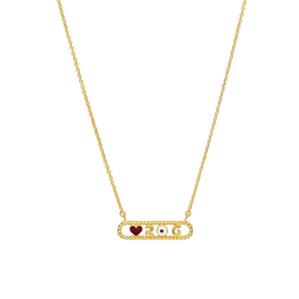κολιέ από ορείχαλκο γούρι 2026 επίχρυσο, με σμάλτο, κούμπωμα ανεροσόλ μήκος 45εκ.