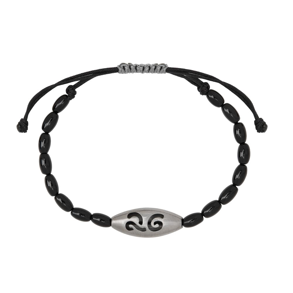 βραχιόλι από ορείχαλκο γούρι 2026 μαύρο πλατίνωμα, ημιπολύτιμες πέτρες, κούμπωμα μακραμέ αυξομειώμενο.