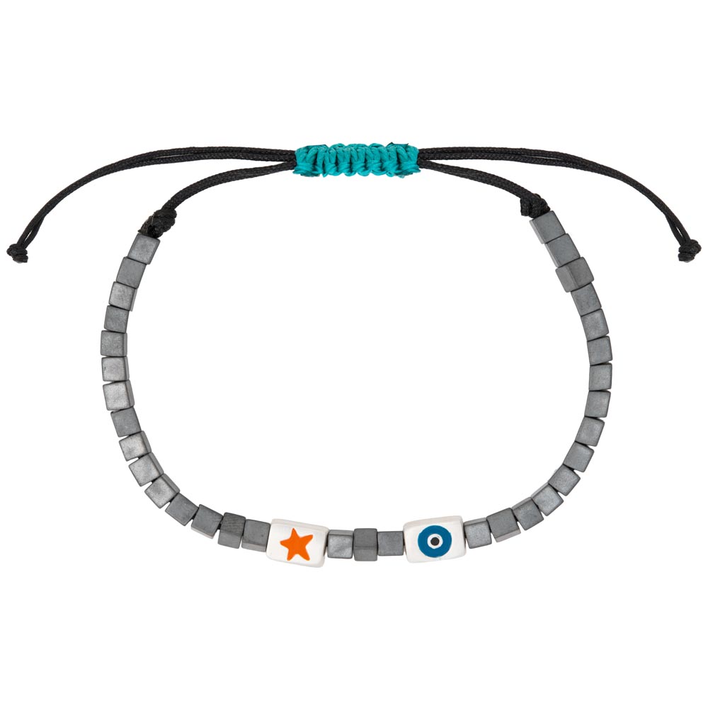 βραχιόλι από ορείχαλκο γούρι 26, επάργυρο, κύβοι με σύμβολα, σμάλτο, στην μια πλευρά γραφει 26 και στην άλλη είναι μάτι και αστέρι, ημιπολύτιμες πέτρες, κούμπωμα μακραμέ αυξομειώμενο