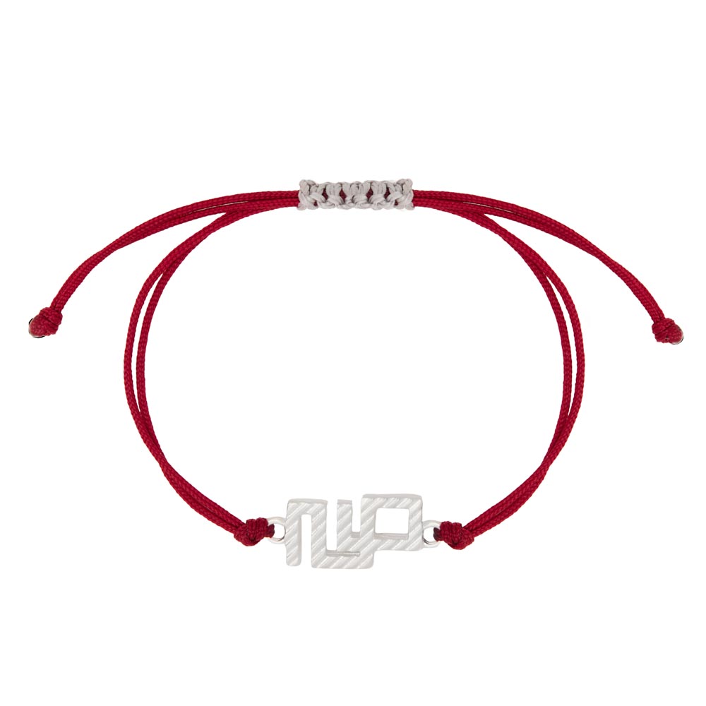 βραχιόλι από ορείχαλκο γούρι 2026 επάργυρο ματ, γκρενά κορδόνι, κούμπωμα μακραμέ αυξομειώμενο.