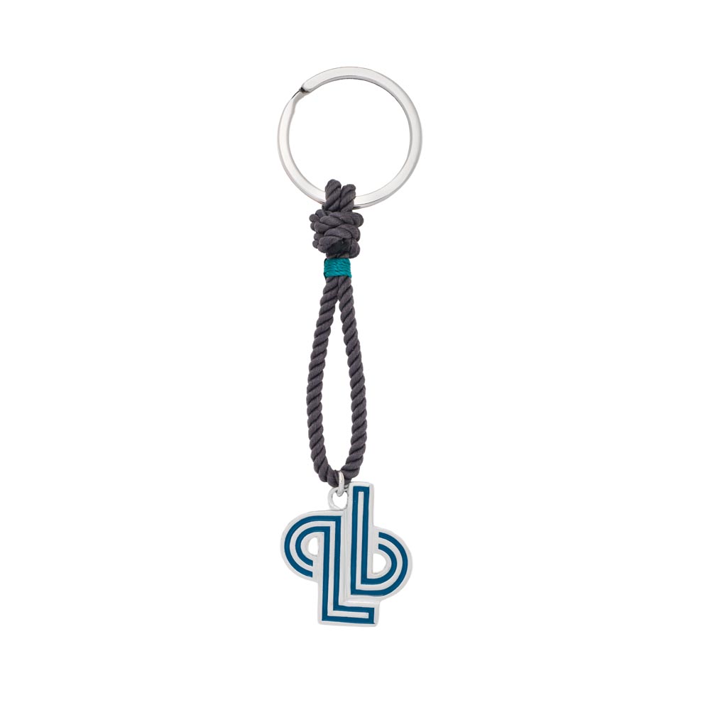 κλειδοθήκη από ορείχαλκο γούρι 2026 επάργυρο ματ με πετρόλ σμάλτο και κρίκος επάργυρος, κορδόνι γκρι σκούρο