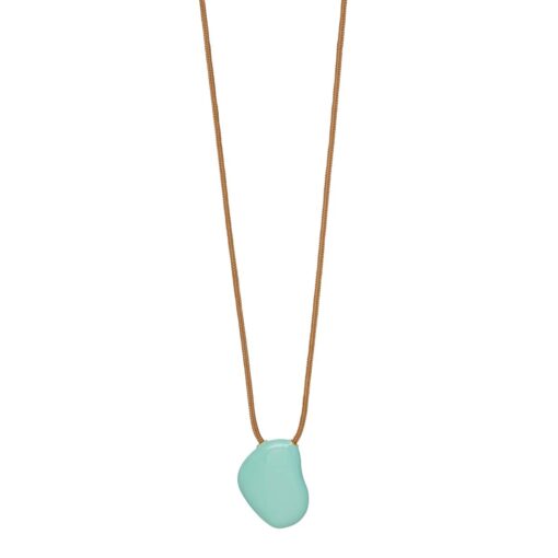 Κολιέ από ορείχαλκο επιχρυσωμένο βότσαλο, με τυρκουάζ σμάλτο και καφέ κορδόνι, μήκος κορδονιού 80εκ, κούμπωμα αυξομειώμενο