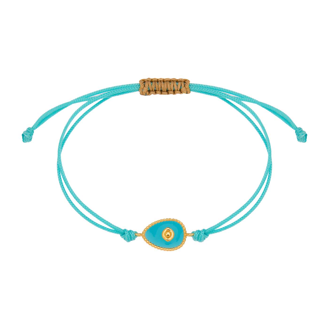 βραχιόλι από ασήμι 925 επίχρυσο με πλακέ αυγό μάτι με σμάλτο, κορδόνι, κούμπωμα μακραμέ αυξομειώμενο