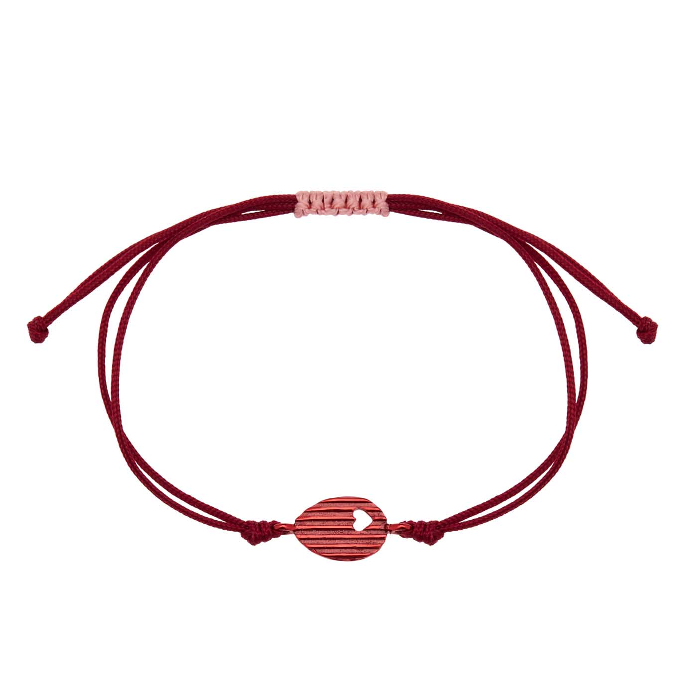 βραχιόλι από ασήμι 925, μοτίφ ριγέ με διάτριτη καρδούλα, νανοκεραμική βαφή, κορδόνι, κούμπωμα μακραμέ αυξομειώμενο