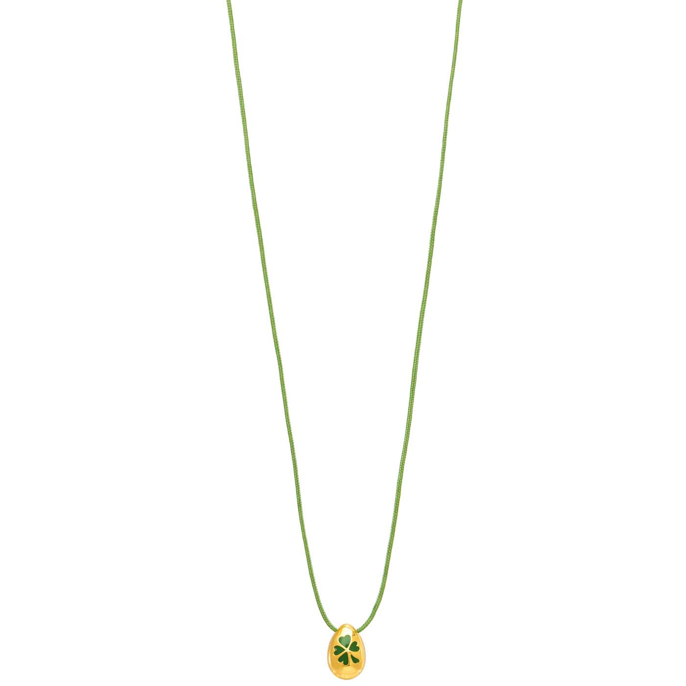 κολιέ από ορείχαλο επιχρυσωμένο, μοτίφ 3D τετράφυλλο, σμάλτο, κορδόνι μήκος 70εκ, κούμπωμα μακραμέ αυξομειώμενο