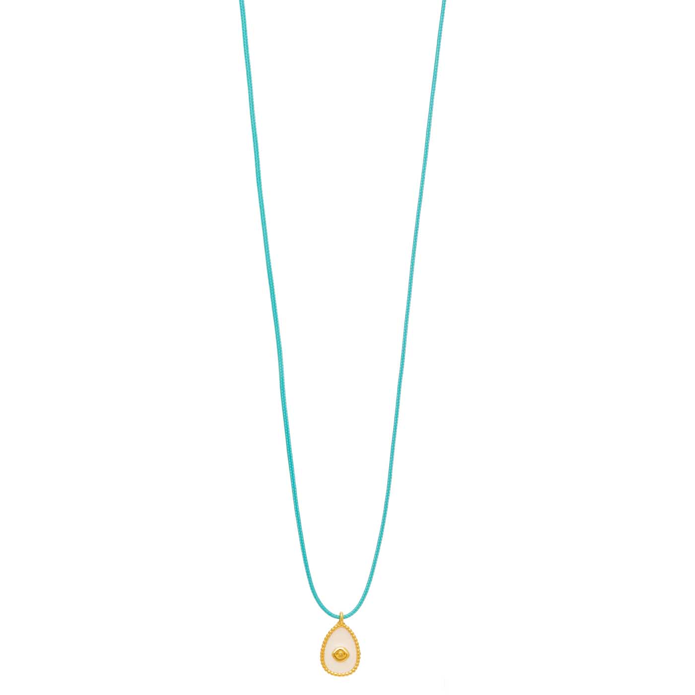 κολιέ από ασήμι 925 επίχρυσο με πλακέ αυγό μάτι με μπλε σμάλτο, κορδόνι 70εκ κούμπωμα μακραμέ αυξομειώμενο