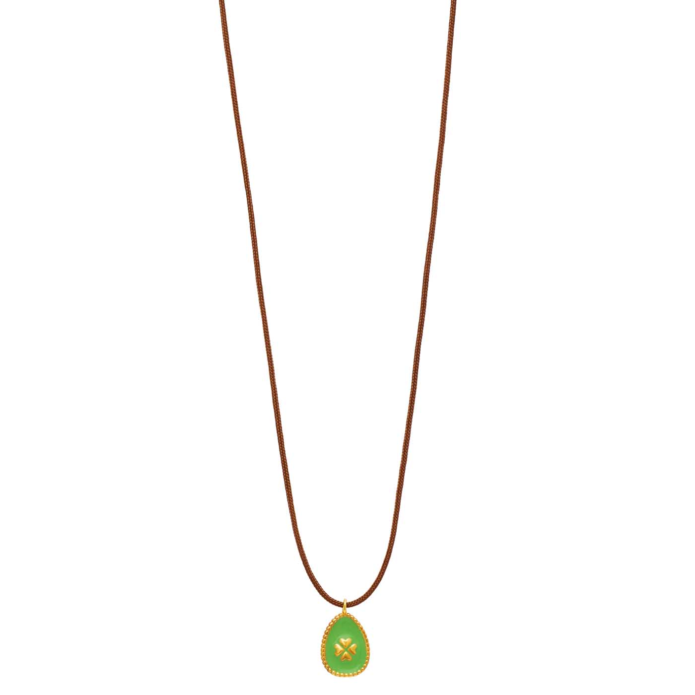 κολιέ από ασήμι 925 επίχρυσο με πλακέ αυγό 4φυλλο με σμάλτο, κορδόνι 70εκ κούμπωμα μακραμέ αυξομειώμενο
