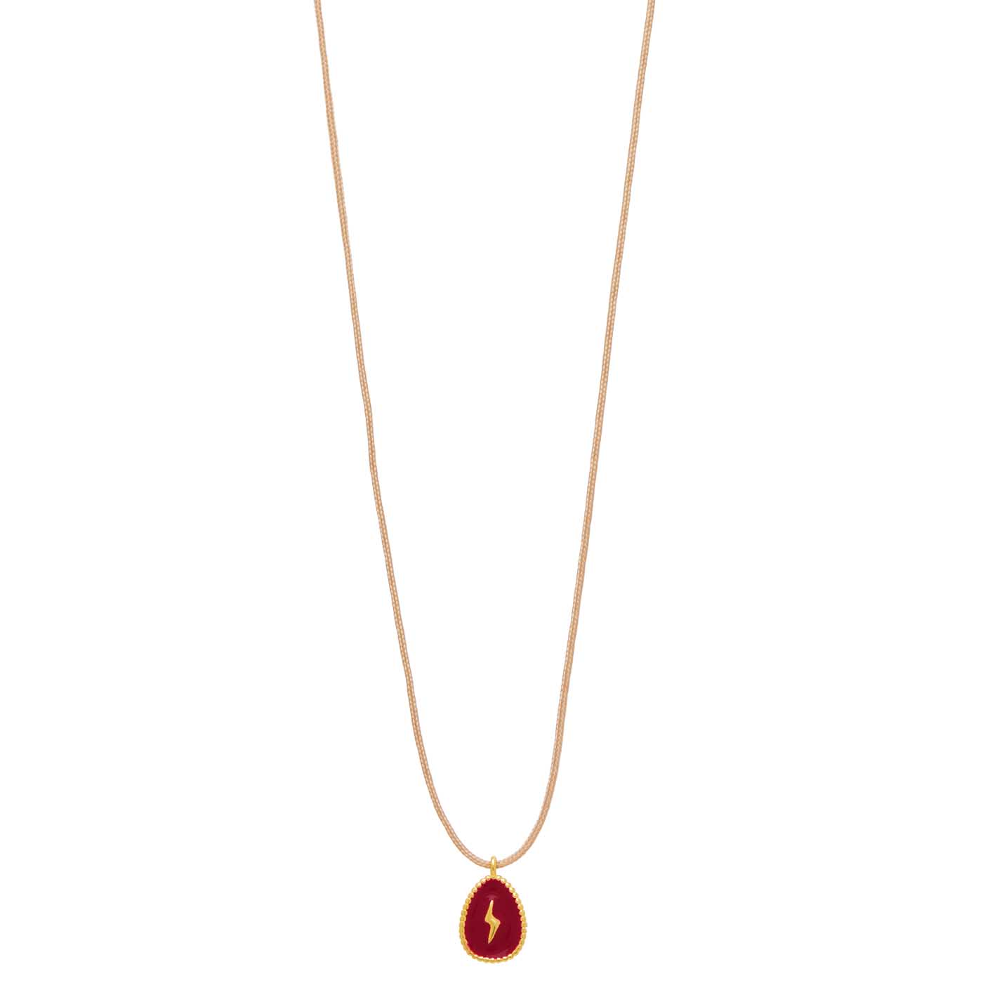κολιέ από ασήμι 925 επίχρυσο με πλακέ αυγό κεραυνός με σμάλτο, κορδόνι 70εκ κούμπωμα μακραμέ αυξομειώμενο