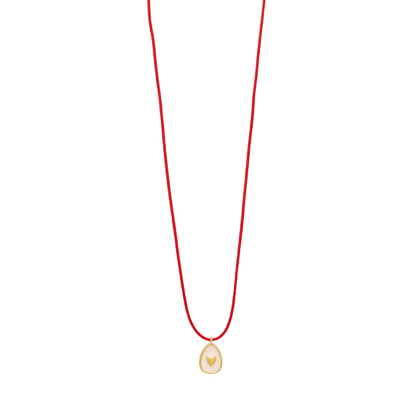 κολιέ από ασήμι 925 επίχρυσο με πλακέ αυγό καρδιά με σμάλτο, κορδόνι 70εκ κούμπωμα μακραμέ αυξομειώμενο