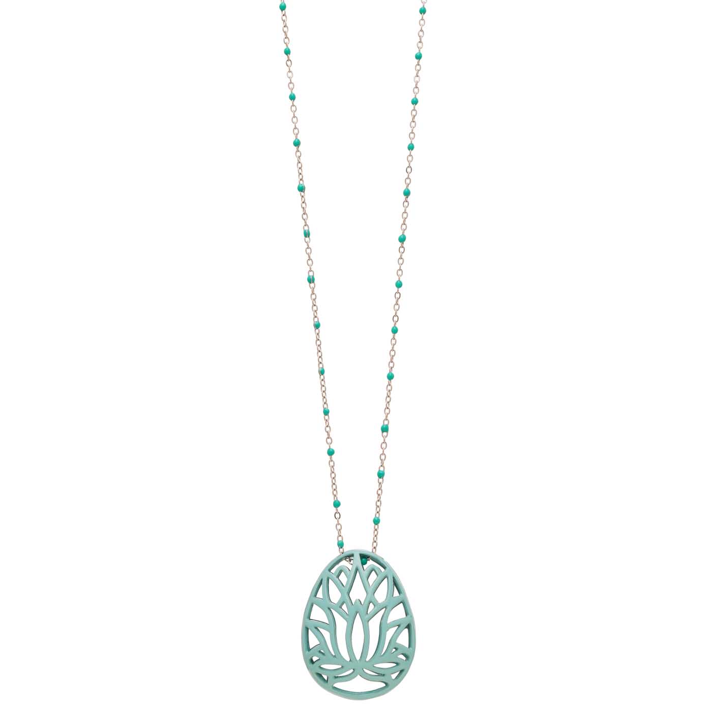 κολιέ από ορείχαλκο αυγό λωτός με ηλεκτροστατική βαφή, καδένα ροζάριο μήκος καδένας 90εκ
