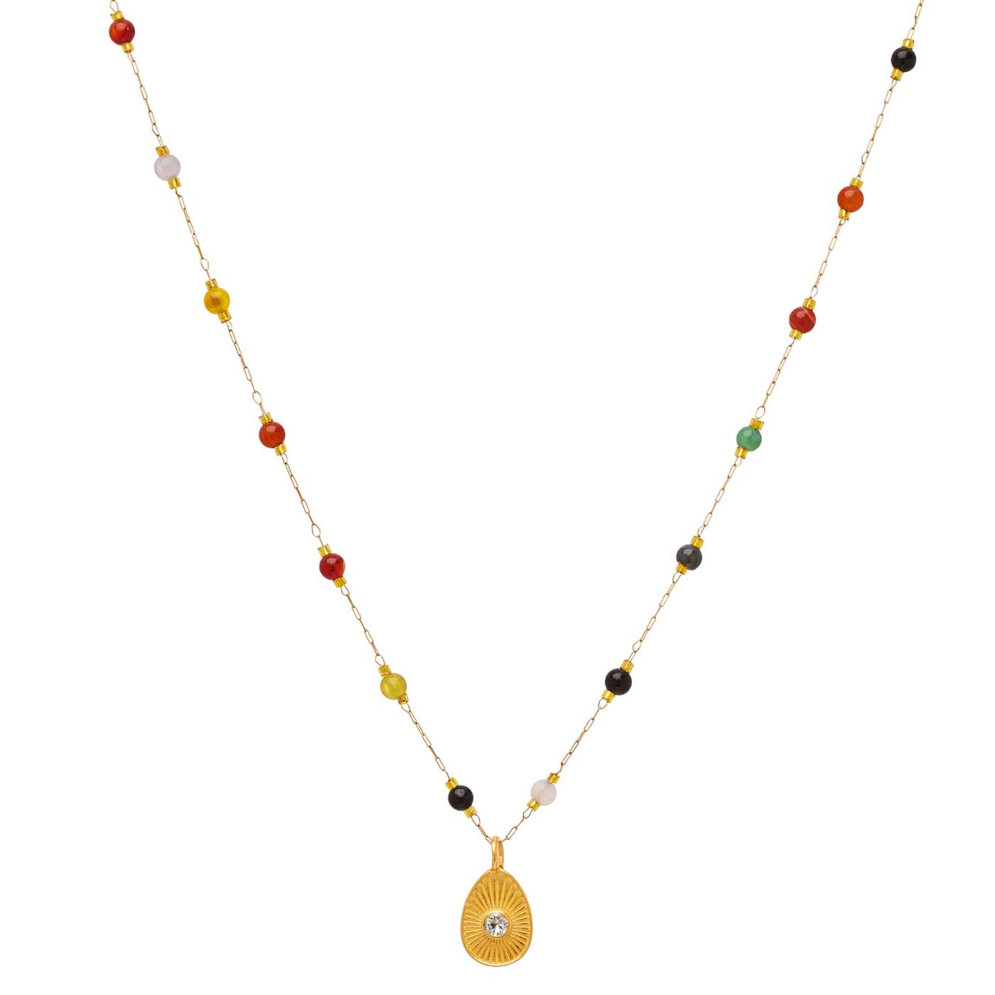 κολιέ από ορείχαλκο επίχρυσο αυγό με λευκό ζιργκόν, ροζάριο, μήκος 45εκ, κούμπωμα ανεροσόλ